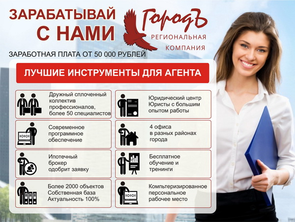 В связи с формированием нового отдела, ООО «Региональная компания «ГородЪ» готова принять на работу сформированный коллектив агентства недвижимости, возможно вместе с руководителем.