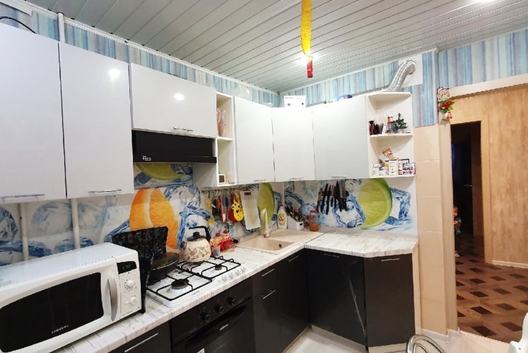В подарок покупателю остается кухонный гарнитур со встроенной техникой.
