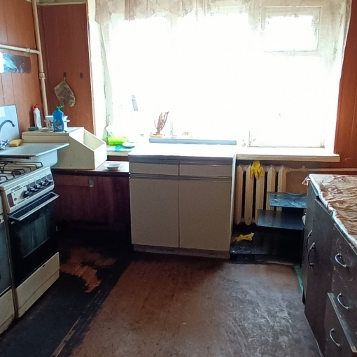 В комнате окно ПВХ, дверь сейф, линолиум. Остается шкаф, письменный стол, телевизор, холодильник, есть место для стиральной машины